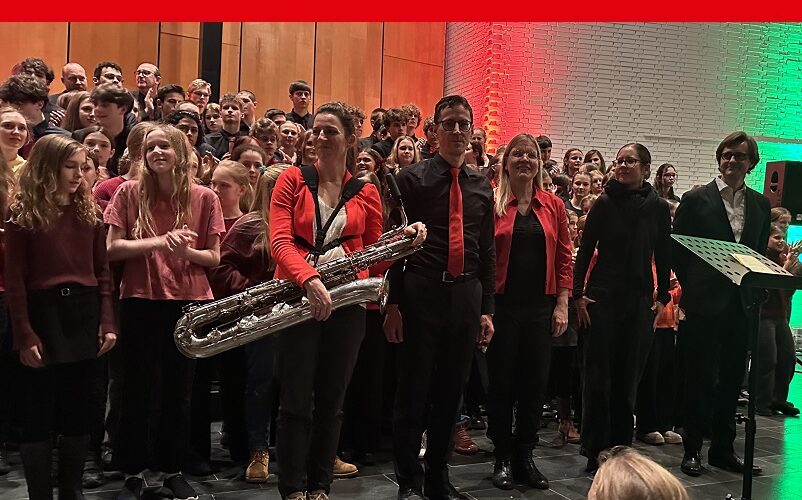 Die Big Band unter der Leitung von Katharina Keiner setzte dabei einen groovigen Höhepunkt am Ende des Programms. Die 22 Musikerinnen und Musiker zeigten in ihrem Zusammenspiel eine beeindruckende Harmonie, selbst während rhythmisch anspruchsvoller Passagen. Besondere Akzente setzten die Bandmitglieder durch exzellent vorgetragene Soli an Trompete, Saxophon, Klarinette & Drums. Zusätzlich bereicherten zwei Sängerinnen den Auftritt und verliehen dem Big Band-Programm eine stimmliche Tiefe. Nachdem die Band das Publikum mit einer Zugabe erfreute, übernahm sie eine zentrale Rolle beim großen gemeinsamen Finale: Sie begleitete alle Mitwirkenden beim festlichen Abschlussstück “Feliz Navidad”.